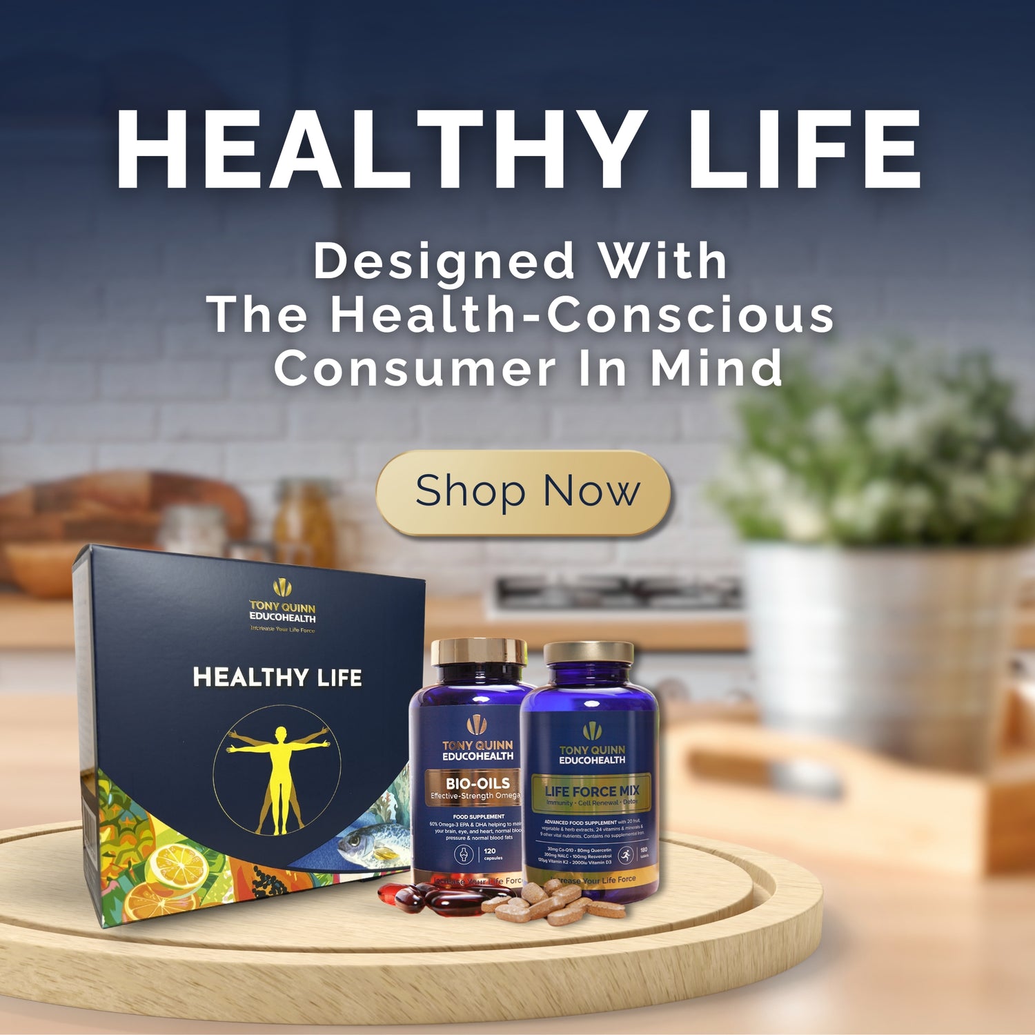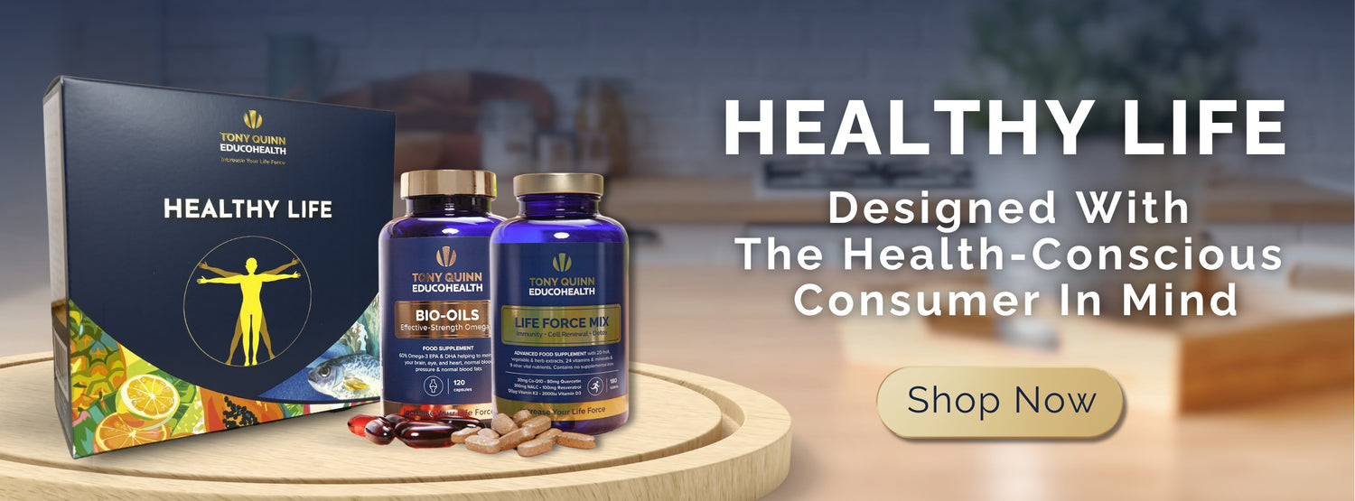 At Tony Quinn Educohealth, we believe that drawing out a person’s innate LIFE FORCE is the greatest health secret of all. A vibrant healthy body full of LIFE FORCE is one of our greatest assets and part of our mission is to educate people about how eating a healthy diet and taking food supplements can make the vital difference.