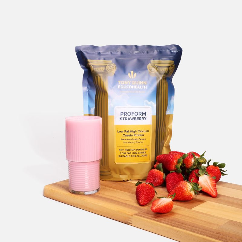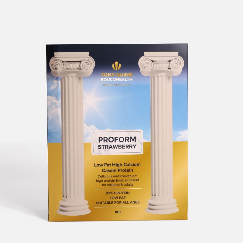 Made as directed with 450ml of milk provides at least 40g of high-quality protein and 800mg of calcium (your daily requirement). One serving a day is a convenient way of replacing one entire meal as part of a diet programme for health. For adults interested in maintaining healthy normal bones and teeth, calcium as provided by low- fat Proform, is an important contributor in this area. Calcium is important for normal muscle and nerve function while the protein contributes to muscle tissue maintenance and development. Make proform protein part of your healthy lifestyle. Proform protein comes in 3 delicious flavours, Real Cocoa, Strawberry, Vanilla.